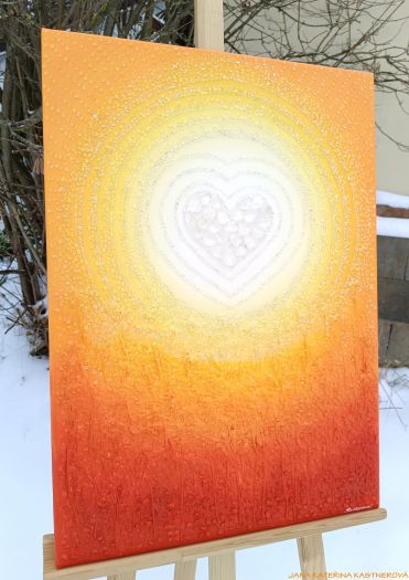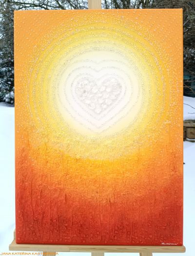 ORIGINÁL - malba na plátno o rozměrech 50x70 cm, vytvořená technikou akryl v kombinaci s množstvím drobných i větších diamantových křišťálů, které jsou každý jednotlivě ručně komponovány do obrazu. Součástí kompozice jsou také zahradní bylinky (dobromysl), symbolizující klid a harmonii. K obrazu je připojena jednoduchá meditace, která umocňuje jeho energetické působení. Malebnou podmalbu lze nejlépe tvořit v atmosféře blahodárného ticha nebo při poslechu meditační hudby, ladící s vaší aktuální přítomností a vnitřním naladěním.