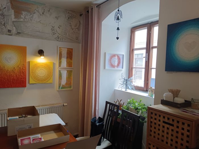 PRODEJNÍ výstava originálů i reprodukcí (maličké obrázky A6 a tisky na papír 30x40cm v bílém rámu) ENERGETICKÝCH OBRAZŮ S KŘIŠŤÁLY Jany Kateřiny Kastnerové