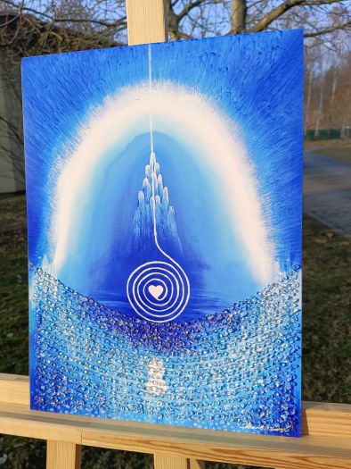 Barevná kompozice obrazu blahodárně působí zejména na 6. a 7. čakru.