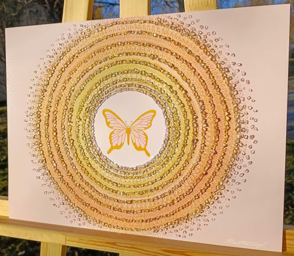 MOTÝL – RADOST, JEMNOST, NĚHA - reprodukce obrazu - tisk na kvalitní grafický papír velikosti 30x40cm, v bílém rámu s vyšším profilem, ručně doplněn diamantovými křišťály