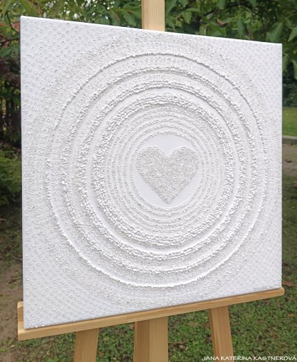ORIGINAL, malba na plátno 50x50cm technikou akryl v doplnění mnoha drobných diamantových křišťálků, které jsou jednotlivě kus po kusu ručně komponovány do obrazu. Ve středu obrázku je SRDÍČKO vytvořené z křišťálu. Součástí obrazu je jednoduchá meditace. Malebnou podmalbu obrazu lze vytvořit blahodárným tichem bo souznící meditační hudbou ladící s vaší momentální přítomností.