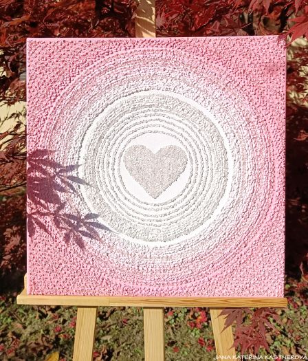 Intuitivní obraz beze slov … Barevná kompozice vede do niterného prožitku, který zjemňuje vše tvrdé a nehybné. Křehké doplňuje osobní silou, nadějí a odhodláním. Maličkosti mění na velké zázraky. Je podporou, péčí, otevřenou náručí, místem, kam se rádi vracíte a je vám hezky.